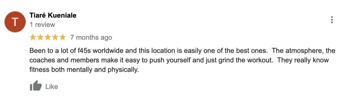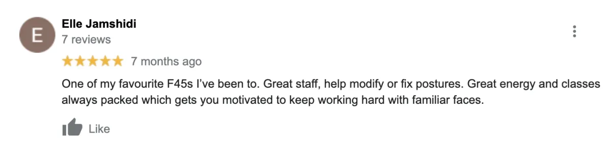 Whatever your level of fitness - whether you're a frequent gym bunny or complete fitness newbie, F45 was designed to get you RESULTS! And you'll leave every visit with a smile on your face!